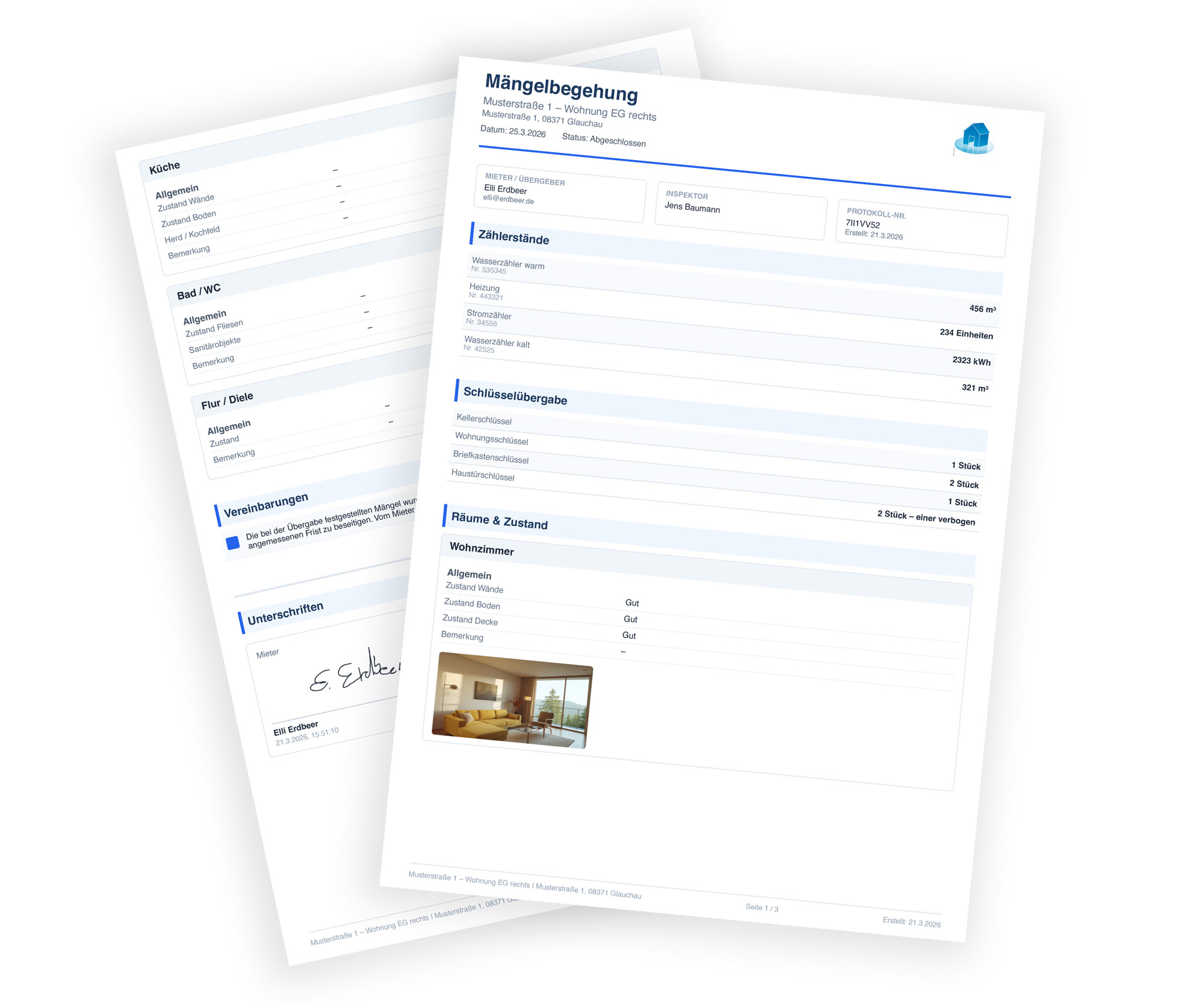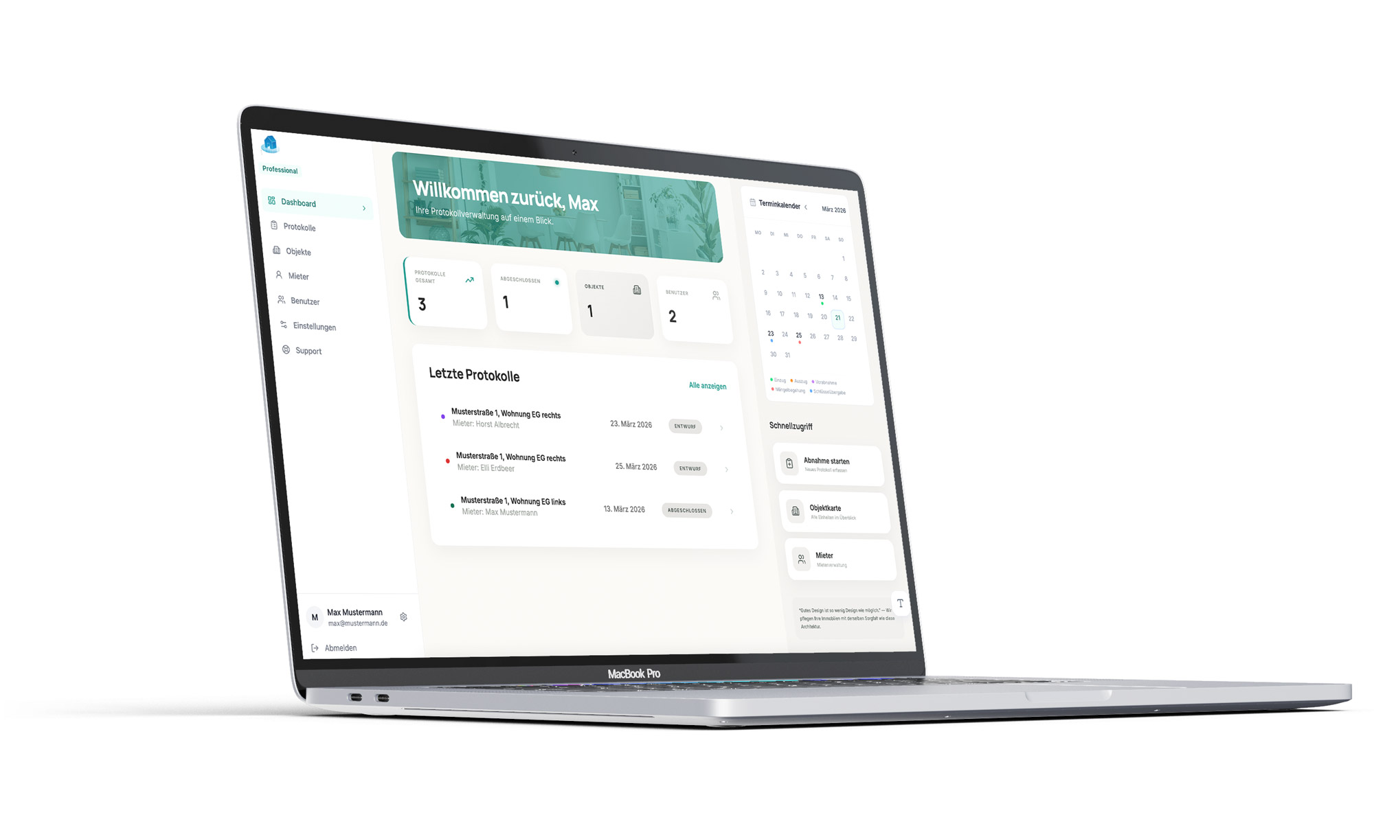 Einzug, Auszug, Vorabnahme und Mängelbegehung — in einem System, einheitlich dokumentiert.